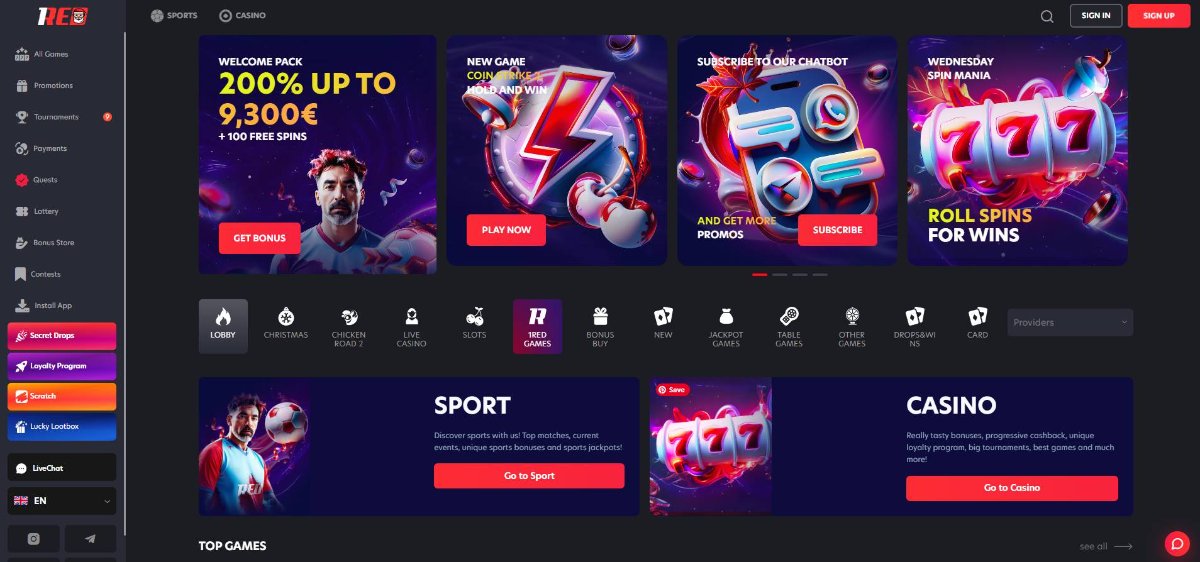 1Red isn't casino-only. The sportsbook covers football, tennis, basketball, and esports. Same account, same balance. For players who want to mix slots with Premier League bets, that's convenient. Odds are competitive with other offshore books.