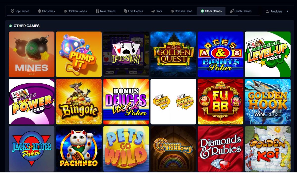 The "Other Games" section caught my attention. Mines, Plinko, Pachinko, video poker variants - this is where crypto casinos differentiate themselves. Traditional casinos ignore this category.
