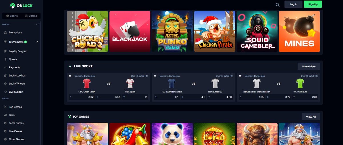 OnLuck dropped onto the scene in 2023, and it shows. The interface is modern, the dark theme with green accents works, and navigation doesn't make you want to throw your laptop. Bets Entertainment N.V. runs the show here - same company behind Bets.io, which has built a decent reputation in crypto circles.