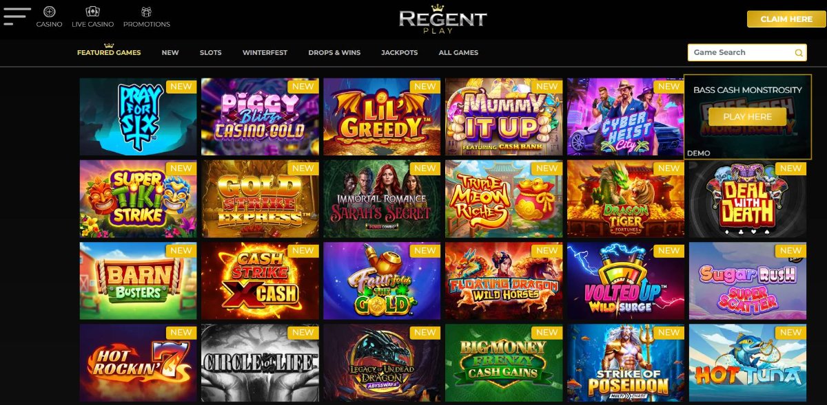 Regent Play actually features these prominently - unusual for a modern casino. NeoGames heritage through Aspire Global shows here. Twenty-plus instant win titles for players seeking quick outcomes over extended sessions.